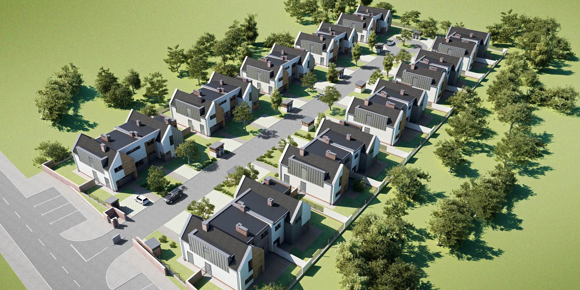 w każdym budynku 2 lokale mieszkalne o pow. 133m2 i 129m2